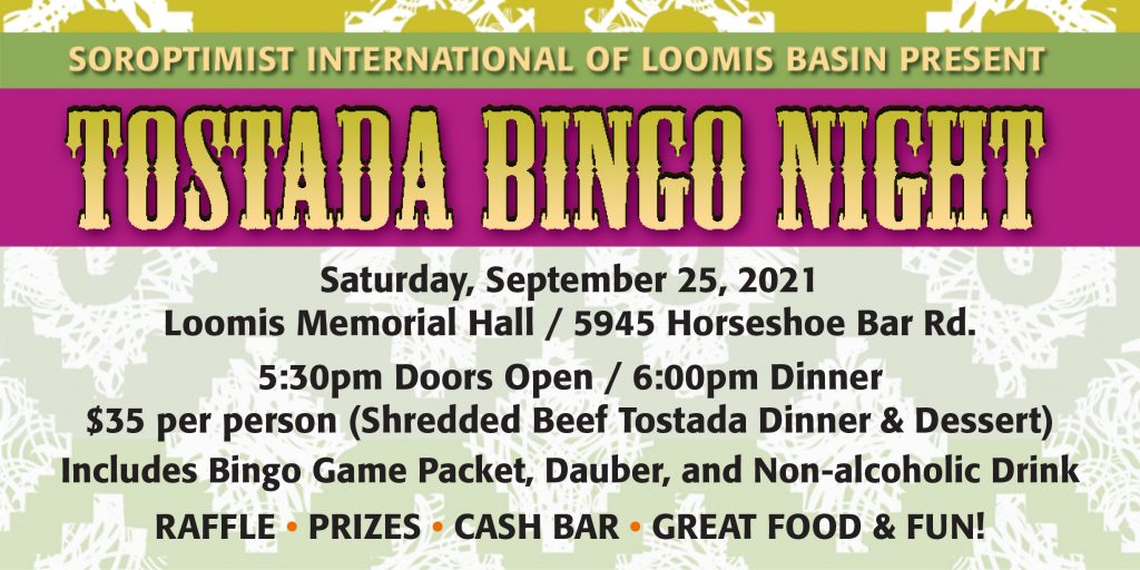 The Soroptimist International of Loomis Basin has postponed the 9-25-21 Tostada Bingo fundraiser .