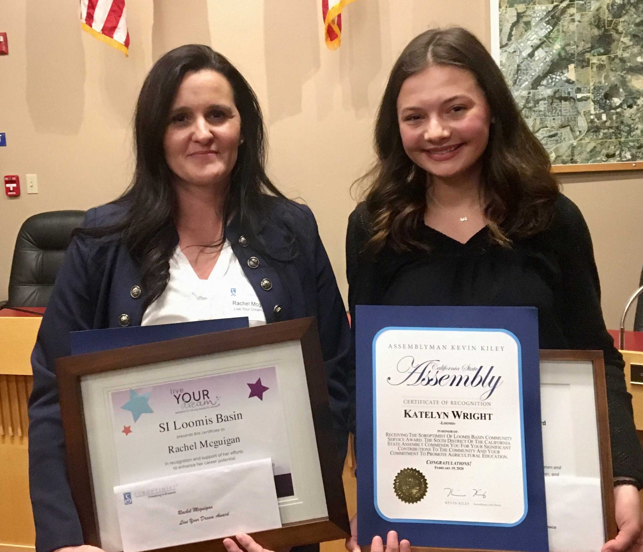 Katelyn Wright, a Del Oro High School student active in Future Farmers of America (FFA) won the Loomis Soroptimist Community Service Award of $1000. She developed “Ag in Our Community” curriculum and presented it repeatedly over the past three years. “This helps broaden the horizons on what people believe what agriculture is … and maybe point them down a career path that has agriculture in it,” said Wright. “I think that I was able to give girls a direct line to a very male dominated field, and show them that they were completely capable of doing these things if they really have the motivation to do so.” Wright will be attending Texas Tech University as a pre-veterinary major in fall 2020.